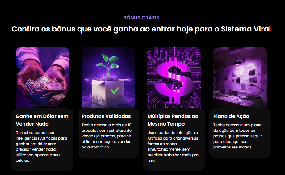 Outro diferencial importante do SISTEMA VIRAL é que você não precisa construir uma audiência massiva antes de começar a monetizar. O sistema funciona mesmo para perfis recém-criados, pois o foco está na qualidade estratégica do conteúdo, não na quantidade de seguidores. De fato, muitos alunos do SISTEMA VIRAL começaram do zero absoluto e conseguiram seus primeiros R$1.000 em menos de 30 dias.